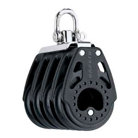 Le guance sono in resina ad elevata densità caricate con carbonio a fibre allungate che consentono di ottenere un bozzello compatto con un alto rapporto resistenza-peso. Le pulegge ruotano su sfere ad alto carico con guide a basso attrito. La puleggia e le guance sono stabilizzate con un additivo anti raggi UV per una elevata durata.