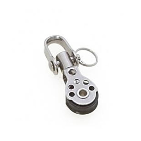Puleggia (mm): 17 Scotta max (mm): 5 Altezza fuori tutto (mm): 29 Peso (gr): 5 Carico di rottura: (Kg): 200