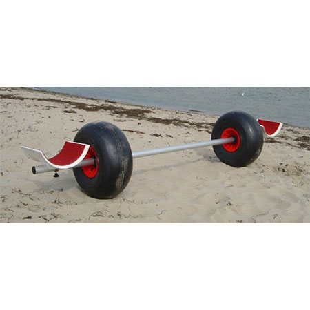 Carrello alaggio con ruote giganti, tubo centrale diametro 50 divisibile per facilitare il trasporto, selle in resistente materiale plastico, la larghezza tra le 2 selle e’ variabile.