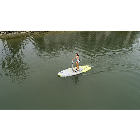 Scopri Mirage iEclipse, la prima tavola stand up gonfiabile a pedali. Offre una notevole rigidità e le stesse agili prestazioni dell’Eclipse, ma in un pacchetto ultraleggero e portatile. L’iEclipse è dotato di una piattaforma extra-ampia con cuscinetti in EVA per una stabilità solida come una roccia con vento, onde e scia. La sua costruzione nuova e migliorata dello scafo riduce il peso aumentando la durata. La costruzione a punto goccia diagonale high-tech consente a iEclipse di gonfiarsi a 10 PSI, offrendoti la stessa robusta rigidità e prestazioni agili dell’originale Eclipse, ma in un pacchetto incredibilmente leggero che puoi portare ovunque. Dotato di propulsione a pedale MirageDrive GT, ogni passo sull’iEclipse ti spinge in avanti con facilità. Il suo sistema di sterzo intuitivo con una sola mano si attacca direttamente al manubrio e alla tavola con un sistema di sterzo facile da usare che può girare su un centesimo con una semplice pressione o trazione della leva. E come tutti i gonfiabili Mirage, iEclipse è facile da montare e ancora più facile da trasportare. Gettalo nel retro della tua auto, caricalo nel camper o controllalo in volo: con iEclipse l’avventura è ovunque. Il manubrio rimovibile in due pezzi, la pompa manuale ad alta pressione e la pompa elettrica ad alto volume sono tutti inclusi in una borsa da viaggio a rotelle facile da caricare che è portatile, stivabile e pronta per la tua prossima avventura.