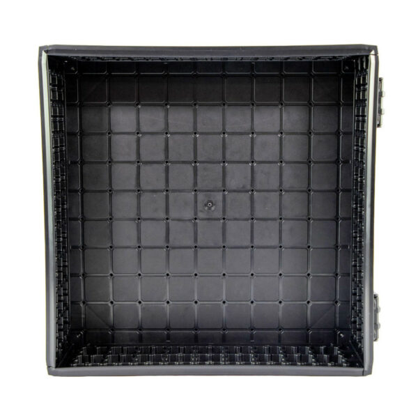 Paraurti del coperchio in gomma Costruzione leggera Piattaforma di montaggio GridLoc posizionata su ogni pannello Dimensioni interne (L, P, A) – 14,9″ x 14,9″ x 4,25″