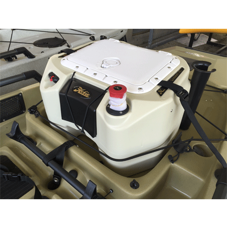 Hobie Livewell XL è una vasca per il vivo che è stato progettato sia per il pescatore da torneo sia per il pescatore dilettante, questo accessorio è in grado di gestire quasi ogni situazione di pesca che si possa immaginare!Hobie Livewell XL dispone di una capacità di due livelli di capacità: 22.71 Litri e 41.60 Litri d’acqua. Viene fornito di serie con 2 portacanne e ha spazio per ulteriori 2. Hobie Livewell XL include una batteria da 6V al gel sigillato, resistente alla corrosione, interruttore di alimentazione e una manopola di controllo del livello dell’acqua del serbatoio.