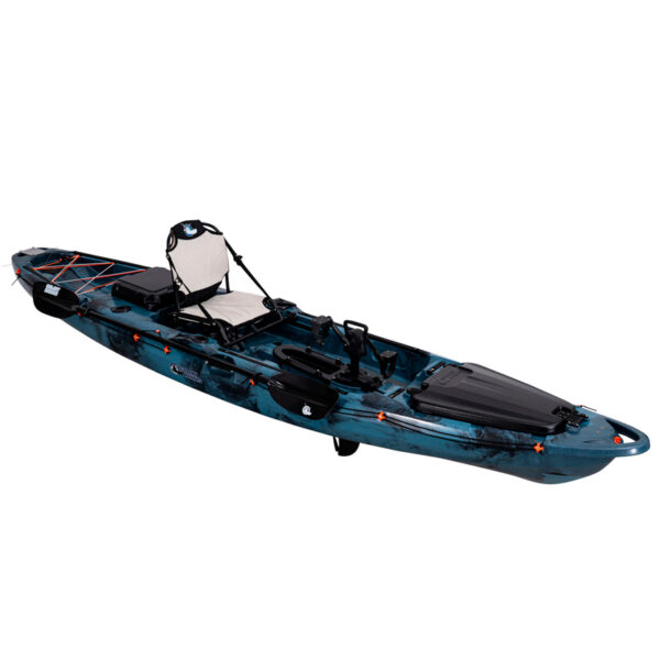 Il Supernova FX è un grande kayak a pedali che misura 397,5 cm di lunghezza per 85,5 cm di larghezza e alto 48 cm. Essendo un kayak più grande guadagni su due elementi chiave: stabilità dello scafo sull’acqua e velocità di crociera. La forma dello scafo lo rende un’imbarcazione molto stabile, ideale per affrontare le tue preferenze; mare, lago o fiume e anche per quelle sessioni di pesca in piedi dove preferisci.