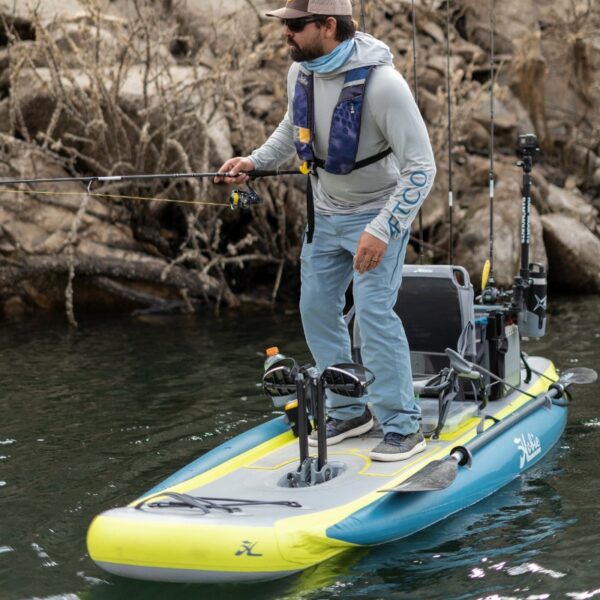 Costruito per tutto, dalle gite di un giorno alle fughe notturne, il kayak gonfiabile Mirage iTrek 11 con posti a sedere appollaiati è la scelta perfetta per qualsiasi avventura. La sua costruzione leggera ad alte prestazioni vanta la velocità, la stabilità e la tracciabilità di un kayak rigido senza il peso aggiuntivo. Si ripone in una borsa da viaggio con rotelle, quindi è richiesto uno spazio di archiviazione minimo. Ideale per camper, barca e persino viaggi aerei! L’iTrek 11 è diverso da qualsiasi altra cosa sull’acqua. Il suo design unico porta il comfort a un nuovo livello con la seduta rialzata dotata di portabicchieri e tessuto nano-mesh traspirante. Alimentato dal MirageDrive GT con alette kick-up e timone integrato per il doppio governo, iTrek 11 è divertente, agile e velocissimo. Il sistema di sterzo ambidestro consente il montaggio del manubrio sul lato sinistro o destro del sedile. Ultra stabile con 400 libbre. portata. Un vero cavallo di battaglia, l’iTrek 11 è dotato di uno scafo gonfiabile robusto con struttura a tripla camera e cuscinetti in EVA per una migliore trazione. Attaccato a ciascun lato della camera centrale è un pontone a camera singola che fornisce una piattaforma extra larga per una corsa stabile. Il suo design migliorato dello scafo offre ancora più stabilità e aumenta la capacità totale, in modo da avere molto spazio per tutta la tua attrezzatura. Una pagaia in quattro pezzi, una pompa manuale ad alta pressione, una pompa elettrica ad alto volume e un portabevande sono tutti inclusi in una borsa da viaggio a rotelle facile da caricare che è portatile, stivabile e pronta per la tua prossima avventura. Alimentato dal MirageDrive GT con pinne kick-up, raggiungere il tuo punto di pesca preferito non è mai stato così facile.