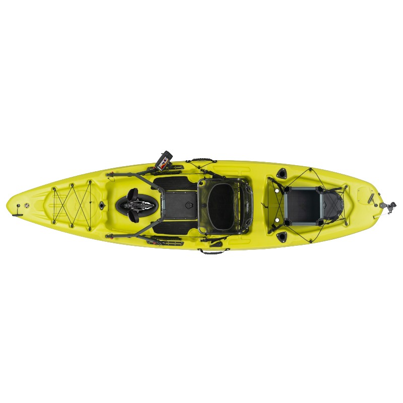 Il Mirage Passport 12 ti porta dove vuoi andare con facilità della propulsione a pedale. Rilassarsi sul sedile in mesh traspirante del Passport, un’area di pozzetto più ampia rivestita in EVA offre una piattaforma stabile per stare in piedi e allungare le gambe o lanciare un’esca. I pescatori saranno felici di sapere che il Passport 12 ha una cavità per l’alloggiamento del trasduttore per una semplice installazione dell’ecoscandaglio e la predisposizione per la staffa Power-Pole® Micro, il sistema di ancoraggio per fondali bassi. Altre caratteristiche includono il sistema di sterzo con timone ripiegabile, due supporti per canna da pesca, binari accessori e portaoggetti sotto il sedile.