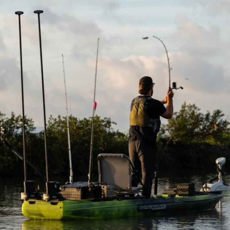 Scopri il nuovo sistema di timone Springblade, appositamente progettato per offrirti il massimo controllo sulla manovrabilità del tuo kayak. Vira e orienta senza sforzo, anche nelle condizioni d’acqua più difficili, consentendoti di accedere a paradisi di pesca nascosti con precisione e facilità.