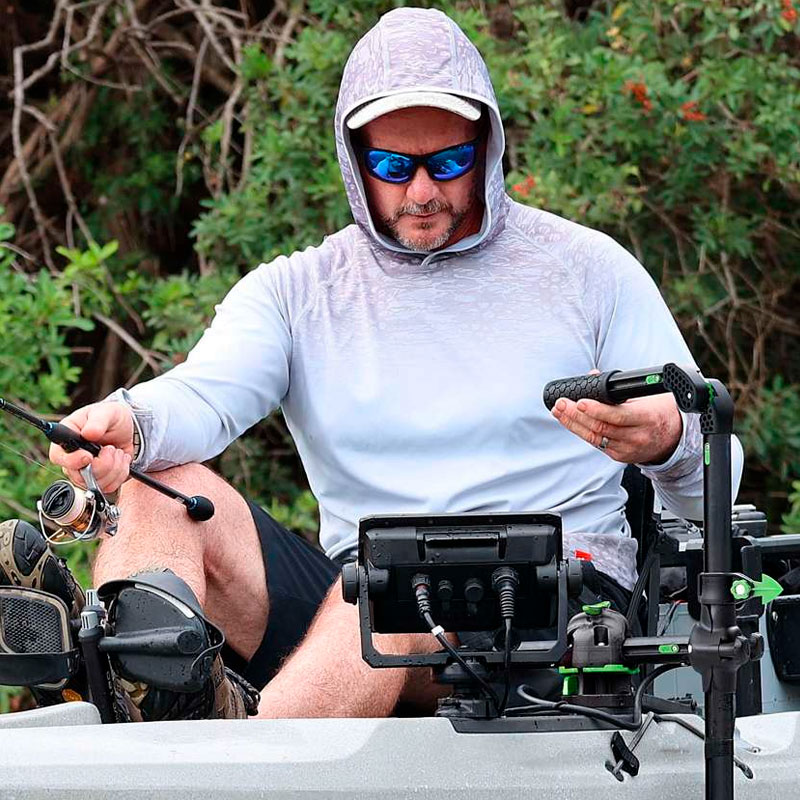 Aggiungendo il nostro TracLoader Gunnel Track in orizzontale, puoi fissare facilmente ecoscandagli, portacanne e trasduttori live più grandi tramite il sistema RAILBLAZAHEXX™ senza praticare ulteriori fori.