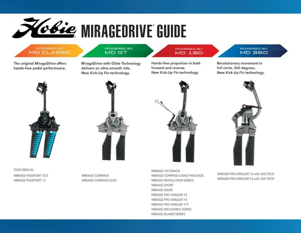 Questa novità invece ha lasciato tutti a bocca aperta all’ICAST 2019 ! Vi mostriamo il nuovo sistema Hobie MirageDrive 180 Kick Up Fin Technology, questo nuovo geniale brevetto permette di sganciare le pinnette in caso di urti o passaggi accidentali nei bassi fondali, sarà disponibile da subito su tutti i modelli 2020 (tranne serie Passport).
